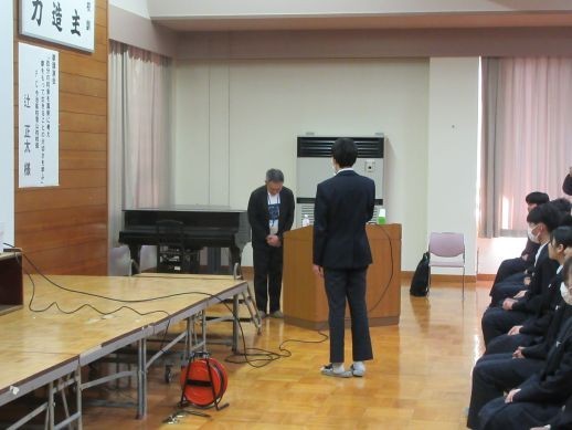 本日、5校時にFC今治高校里山校の辻正太校長先生を講師として、夢講演会を開催しました。講演のテーマは「エラー&ラーン 失敗から学ぶ力 これからの時代を生き抜くために」でした。印象に残った先生の言葉を紹介します。「今日の話に正解はない。問いをもち帰ってもらえれば…」「失敗ってダメなこと?」「失敗はどうして怖い?」「失敗しないから、まずはやってみる」「アマゾンも失敗から成功した会社」「ひとりでどうにもならないことを、みんなで乗り越える力」「失敗は必ずおきるもの、その先の一歩を踏み出す力」「そもそも失敗なんてものはない、次に向かうための準備」「失敗するかもしれないと思っても、むやみに止めることをしない」「失敗かどうかを決めるのは本人」「挑戦する人が増えると、学校は不安定になる」「一体感はつくるものではなく、結果的にできていくもの」「挑戦する人が損をしない空気をつくること」「『動けば変わる』、あなたの一歩、一言が世界を変える」この後は、青森県弘前市で経営している副業の会社に向かうそうです。大変お忙しい中、私たちに分かりやすい話をしていただき、ありがとうございました。生徒の皆さん、ぜひ失敗を怖れず、色々なことに挑戦してみましょう!