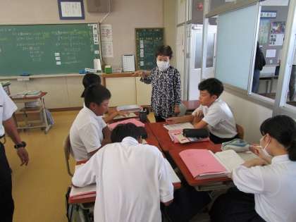 本日は要請による学校訪問の日でした。学校訪問とは、三豊市教育委員会、西部教育事務所、町内の校園長先生、学校運営協議会の皆様方をお招きして、授業を参観していただき、その後、本校の学校経営や教育活動について指導・助言をいただく日のことです。全体講評では、本校の環境整備ができていること、落ち着きのある態度で生徒が授業を受けていること、先生方が自分らしさを発揮して、元気に授業を行っていること等をほめていただきました。いただいた貴重なご意見は、今後の学校運営、教育実践にいかしていきたいと思います。