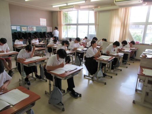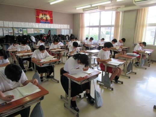 修学旅行を終えたばかりの3年生ですが、振替休業日明けの本日は第1回学習の診断を行っています。年間7回ある診断テスト(高校入試と同じ形式のテスト)がいよいよスタートしました。どの生徒もこれまでの努力の成果を発揮するべく、テストに真剣に取り組んでいます。