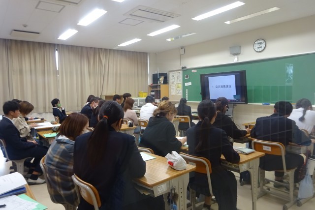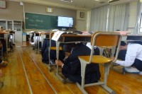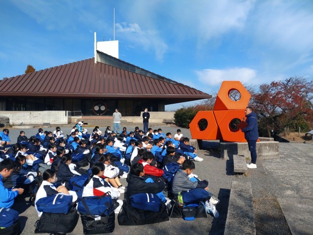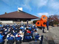 • 学校前でコースの案内をしています