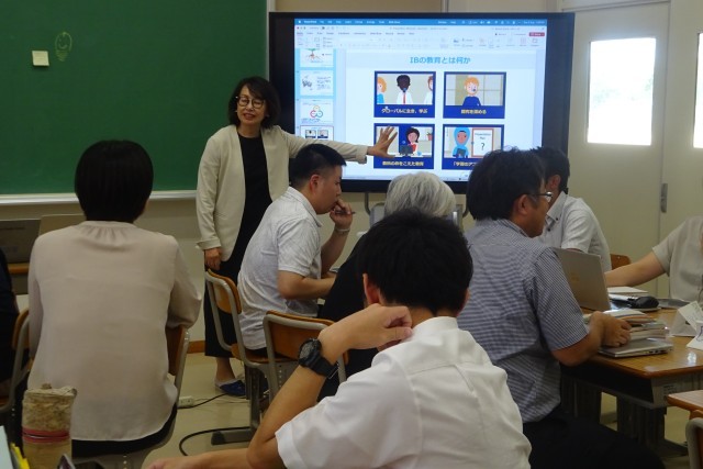8月5日(火)に教職員対象の国際バカロレア(IB)教育のワークショップを詫間中学校で開催しました。講師にシンガポールより日高先生をお迎えして、学習者を主体とした授業を進めていくための研修をしました。グループごとに意見を出し合い、IB教育の概念や学習者像等について理解を深めることができました。