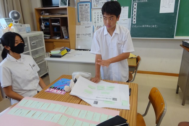 9月25日(木)中間テスト終了後に、全校生が各学級ごとに、探究学習プログラムのスモールスタートを実施しました。1、2年生は3校時に、前回、班で考えた「同世代の日常のあるある」から、「同世代の日常を変える新商品」のアイディアを考え、次回のプレゼンに向けてまとめていきました。3年生は、3・4校時に「同世代の日常のあるある」から、「同世代の日常を変える新商品」のアイディアを考え、次回のプレゼンの準備をしました。「日常のあるある」を付箋に書き出し、共有することで、生徒たちは身の回りにどれほど多くの課題が潜んでいるかに気づきました。最初は戸惑っていた生徒たちも、次第に「それ、わかる!」と共感し合い、意見を交わす姿が見られました。