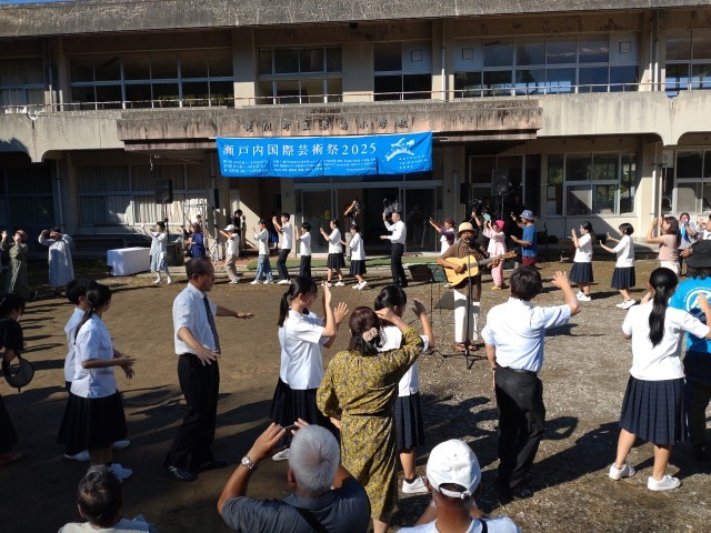 10月5日(日)に、瀬戸内国際芸術祭2025、粟島会場のオープニングセレモニーに吹奏楽部が参加しました。「The Drift ~漂流の島~」をテーマに、演奏やダンスのパフォーマンスに参加しました。