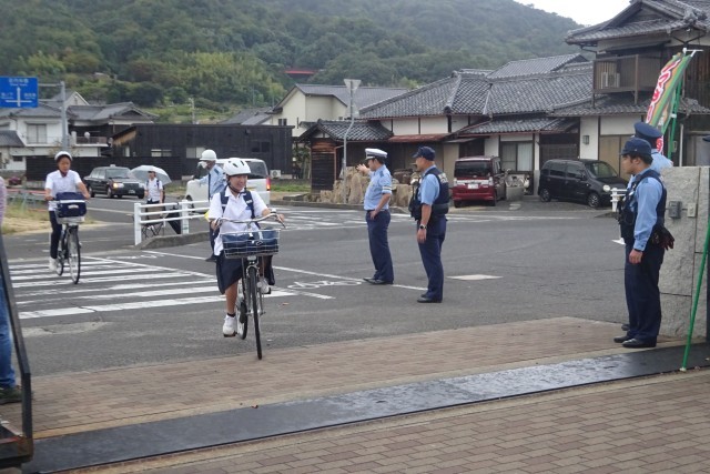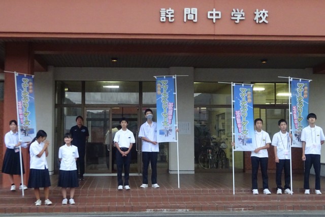 本日10/15(水)の朝、本校のマナーアップリーダーズの生徒が警察署のご協力のもと、中学校正門前で、あいさつ運動を実施しました。登校する生徒たちに元気な声であいさつを交わすとともに、交通安全を呼びかける活動を行いました。特に、自転車の安全な乗り方や交差点での左右確認の徹底を呼びかけ、一人ひとりの交通安全意識を高める良い機会となりました。
