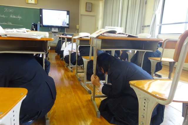 本日11月5日、本校は「香川県シェイクアウト」(県内一斉防災訓練)に参加しました。午前10時の緊急地震速報の訓練放送と同時に、生徒たちは一斉に机の下に入るなど、「まず低く、頭を守り、動かない」という安全確保行動を迅速にとりました。教室や特別教室など、校内の様々な場所で、生徒一人ひとりが真剣な表情で訓練に取り組む姿が見られました。今回の訓練を通じて、いつ発生するかわからない地震から自らの命を守るための行動を再確認し、防災意識を高めることができました。本校では、今後も生徒たちの安全を第一に考え、防災教育の充実に努めてまいります。ご家庭におかれましても、この機会にぜひ、避難場所の確認や備蓄品の点検など、防災について話し合っていただければ幸いです。