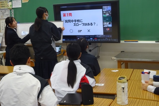 12月5日(金)、今年度のテーマ「誰もが過ごしやすい学校とは~あたりまえを変えよう~」のもと、全校生による人権集会を行いました。体育館工事のため、リモートで各教室をつなぎ、オンラインで実施しました。25の縦割りグループに分かれて活発に話し合いを実施しました。一人ひとりの人権を大切にし、誰もが幸せを感じられる学校にしていくため、真剣に意見を交わすことができました。