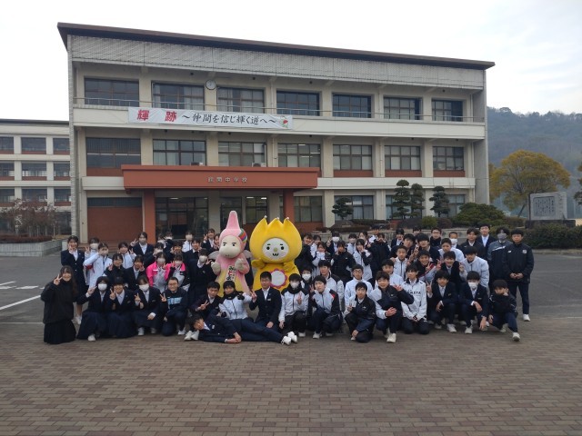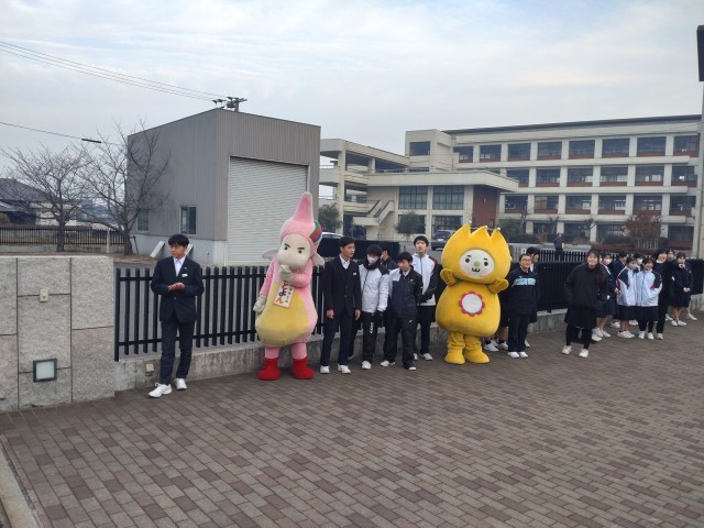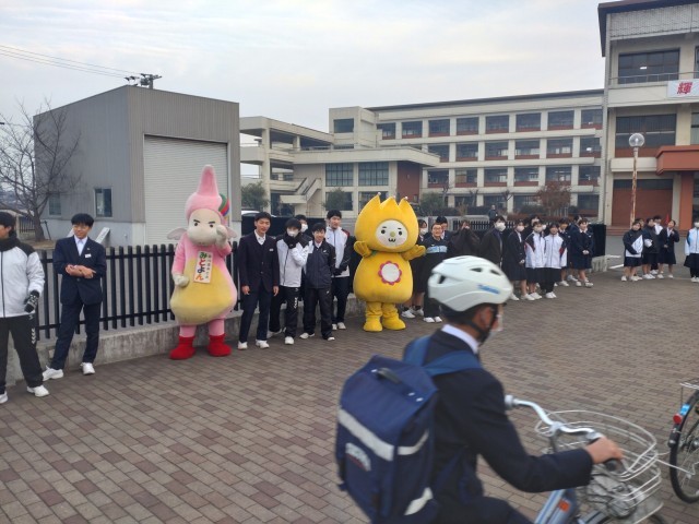 三豊市のキャラクター「みとよん」も一緒にあいさつ運動に来てくれました。