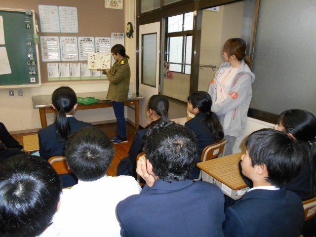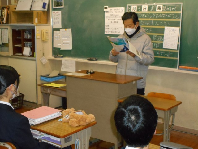 3月3日(火)の朝、6名のボランティアの皆様にお越しいただき、1、2年生を対象とした読み聞かせを行いました。日本語の温かい語り口や、リズム感あふれる英語の朗読に、生徒たちの表情もふわりと和らいでいました。中学生にとっても、物語を「聴く」という体験は、心を癒やし、想像力を広げてくれる大切な時間です。朝の教室がパッと明るくなるような、とても「ほっこり」とした素敵な時間になりました。お忙しい中、子どもたちのために準備をしてくださったボランティアの皆様、本当にありがとうございました。