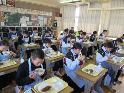 今週は、全国学校給食週間です。戦後、多くの人の善意で学校給食が再スタートしたことを記念して設けられています。本日1月27日(木)のメニュー(肉もっそ、金時にんじんの松葉揚げ、小松菜の酢みそ和え、ふしめん汁)は、全て郷土料理で構成されていました。給食を通して、私たちが住むふるさとを見つめ直し、そのすばらしさを再確認しましょう。