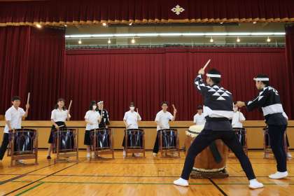 本日の6校時に「鼓童」の公演を鑑賞しました。和太鼓の力強さと美しさに感動しました。