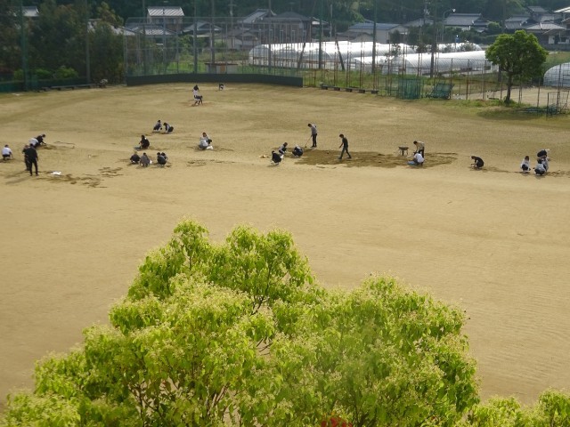 本日7時30分から80名の保護者の方に参加していただき、除草作業が行われました。運動場や中庭等の除草作業を行いました。24日の体育祭に向けて、運動場や中庭が大変きれいになりました。早朝から参加してくださった保護者の皆様、ありがとうございました。