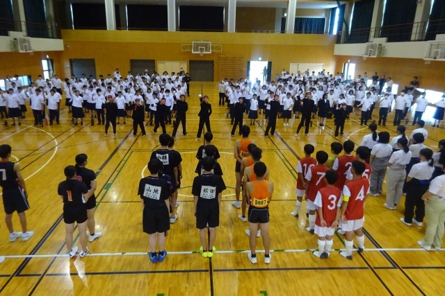 本日5校時は、部活動壮行会でした。それぞれの部が、総体やコンクールに向けての決意を語ってくれました。
